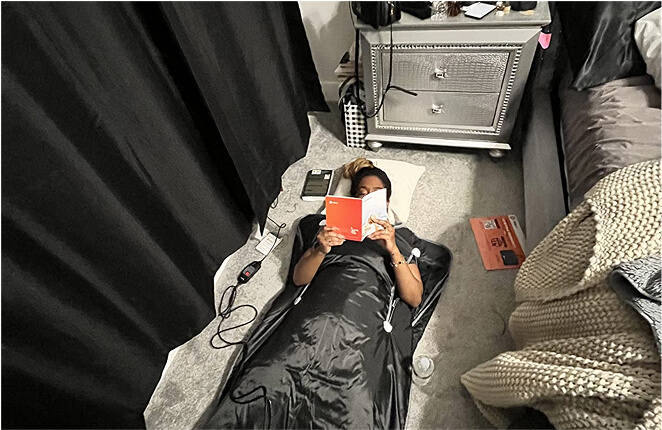 Just one session with BioRemedy Plus sauna blanket can assist your brain in producing happy chemicals, helping you to unwind and let go of stress and anxiety. It's the perfect time to listen to music, watch some TV shows, or just close your eyes and meditate. No matter how you choose to enjoy it, you'll experience that sweet sauna high, gain more energy throughout the day, and sleep like a baby at night.