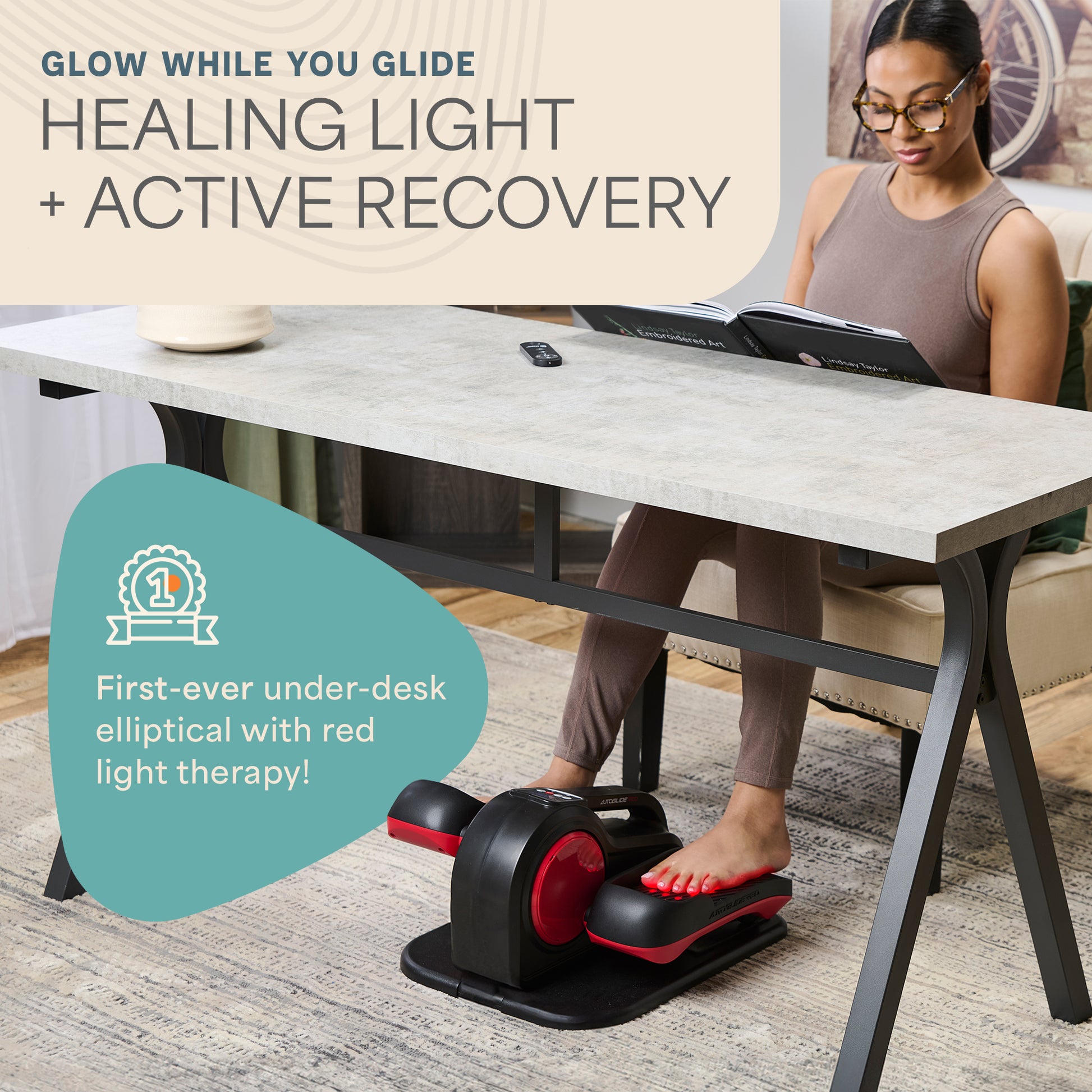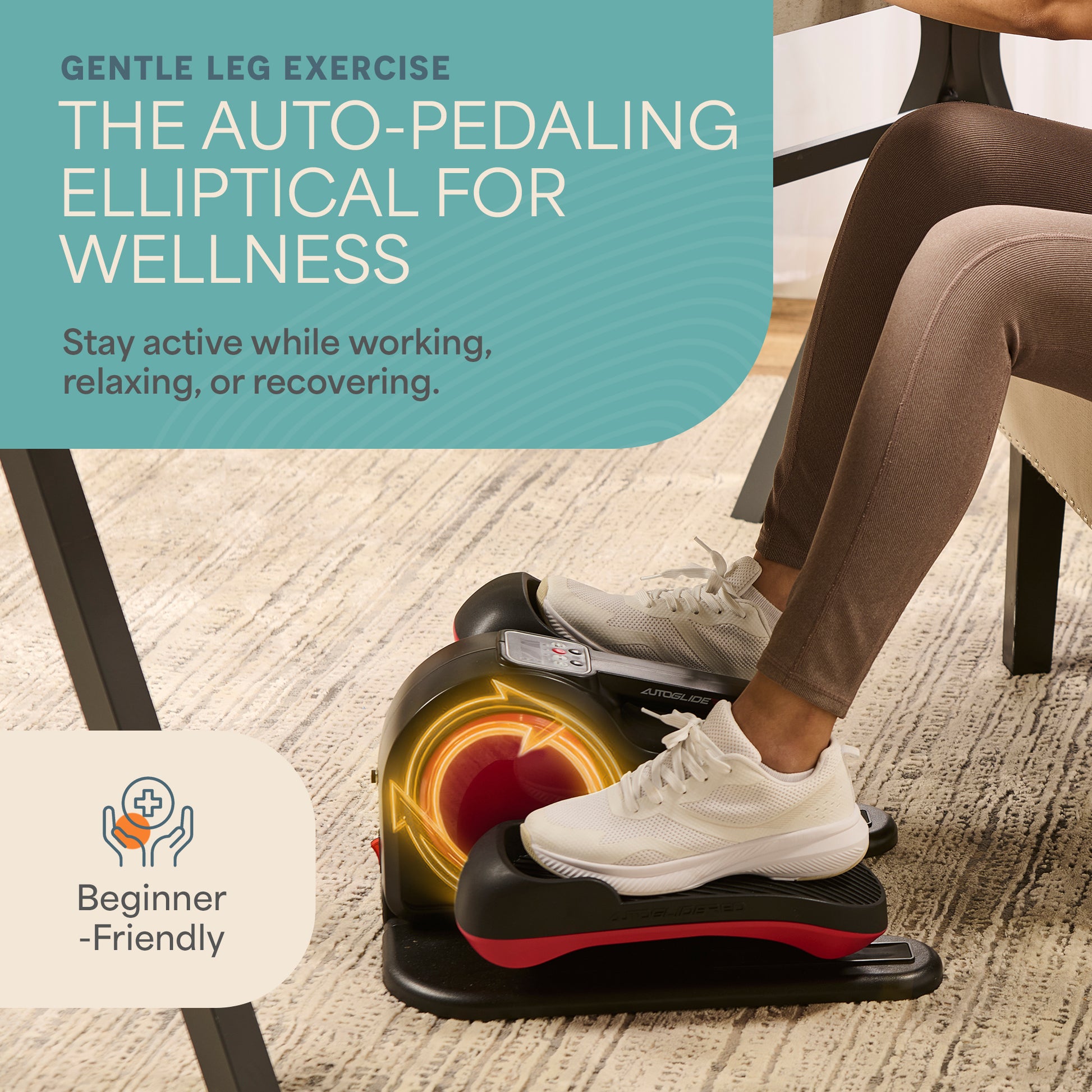 • AutoGlide™ Under Desk Elliptical Machine — dual-mode seated elliptical with auto-pedal and resistance training (18.0" × 15.6" × 10.2"; 16.5 lbs)