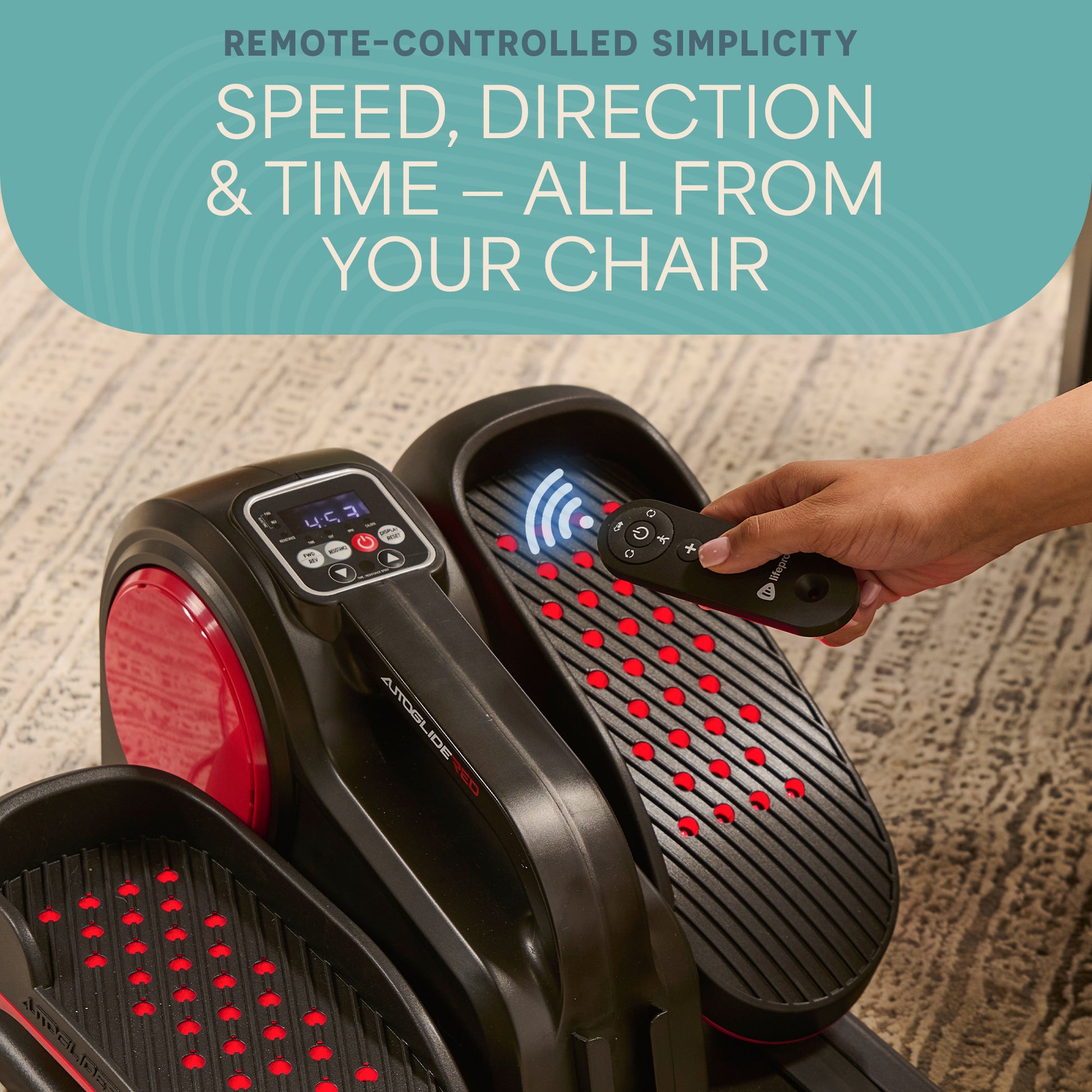 • Only on AutoGlide Red™ — 51 dual-chip LEDs per pedal (640 nm red + 850 nm NIR) target your feet to support circulation and recovery