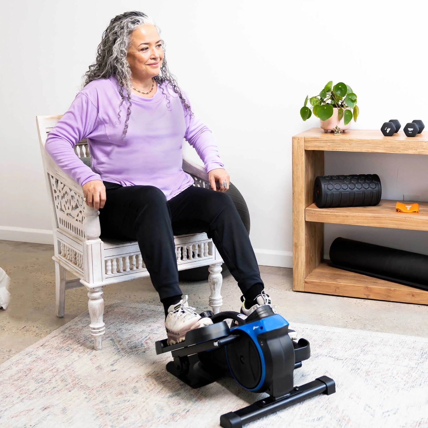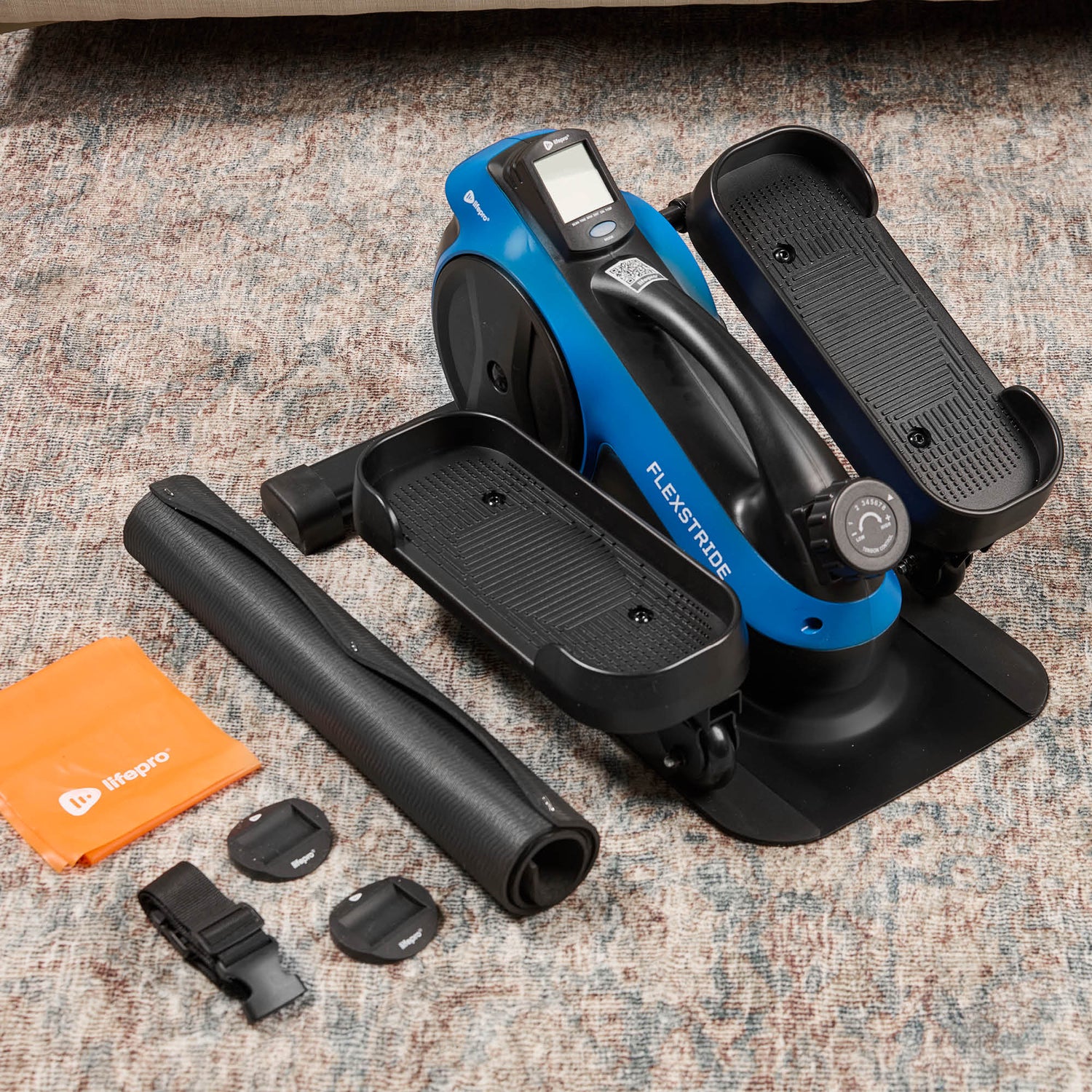 • FlexStride™ Under Desk Elliptical — Seated elliptical with 8 resistance levels and smooth, low-impact pedaling (22.7" × 18.5" × 12.9"; 29 lbs)
