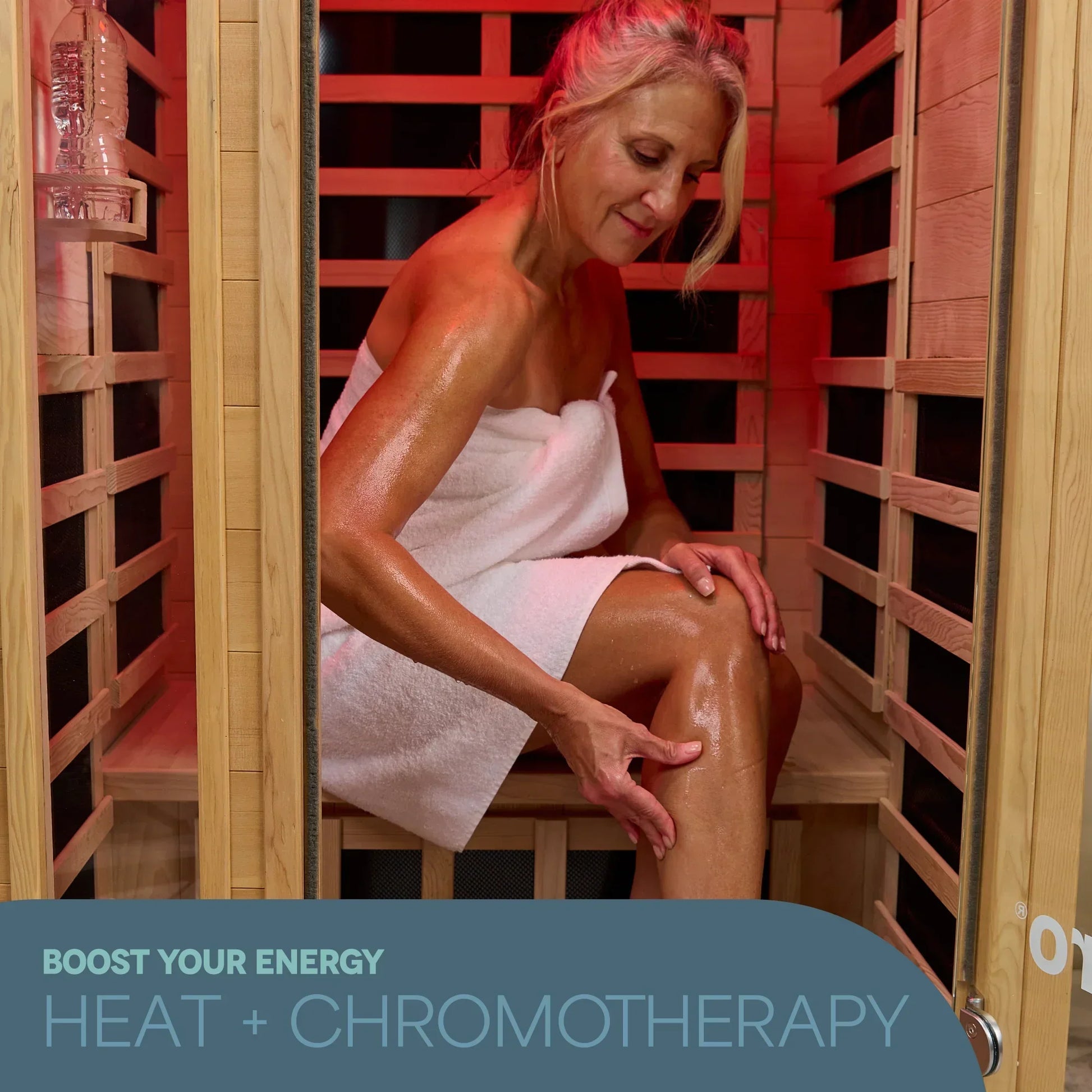 • Red Light Therapy (Duet only) — Built-in LED mode not found in other infrared saunas