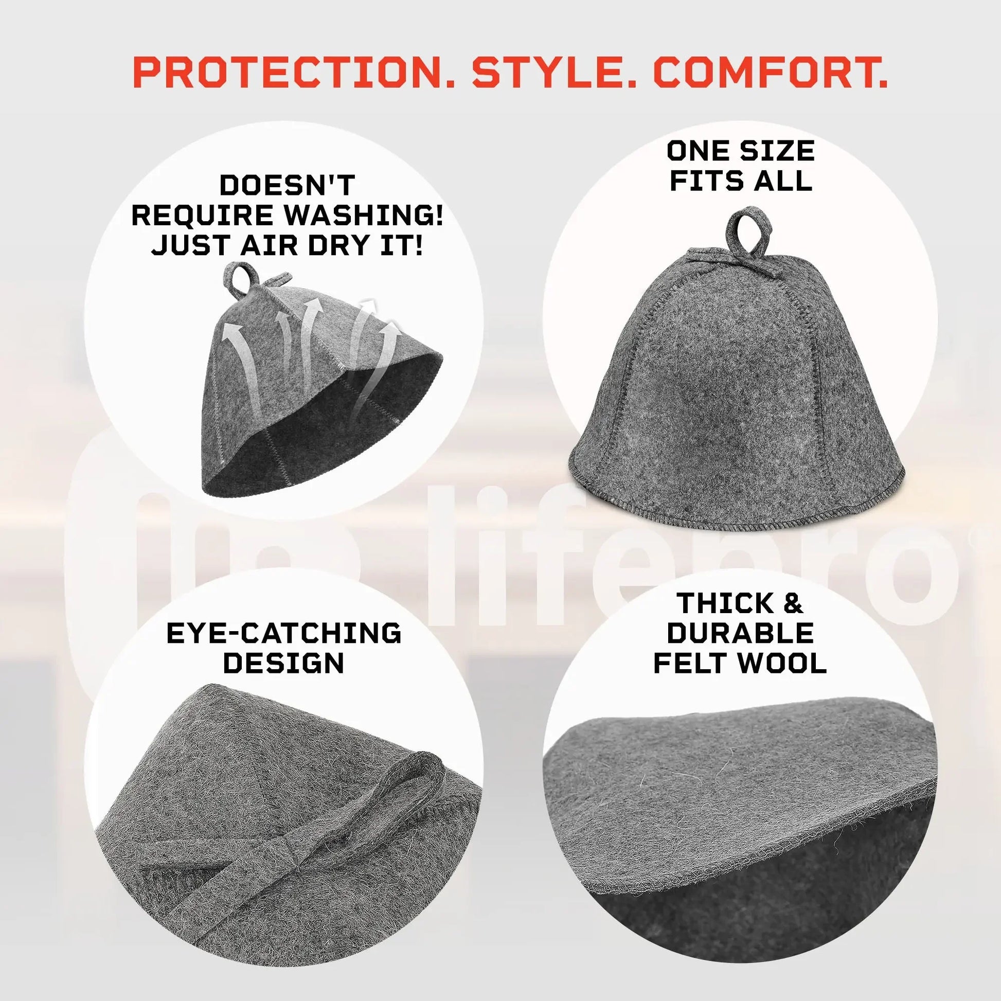 The LifePro Felt Wool Sauna Hat is crafted with premium natural wool to enhance your sauna experience. Designed to protect your head, hair, and skin from intens