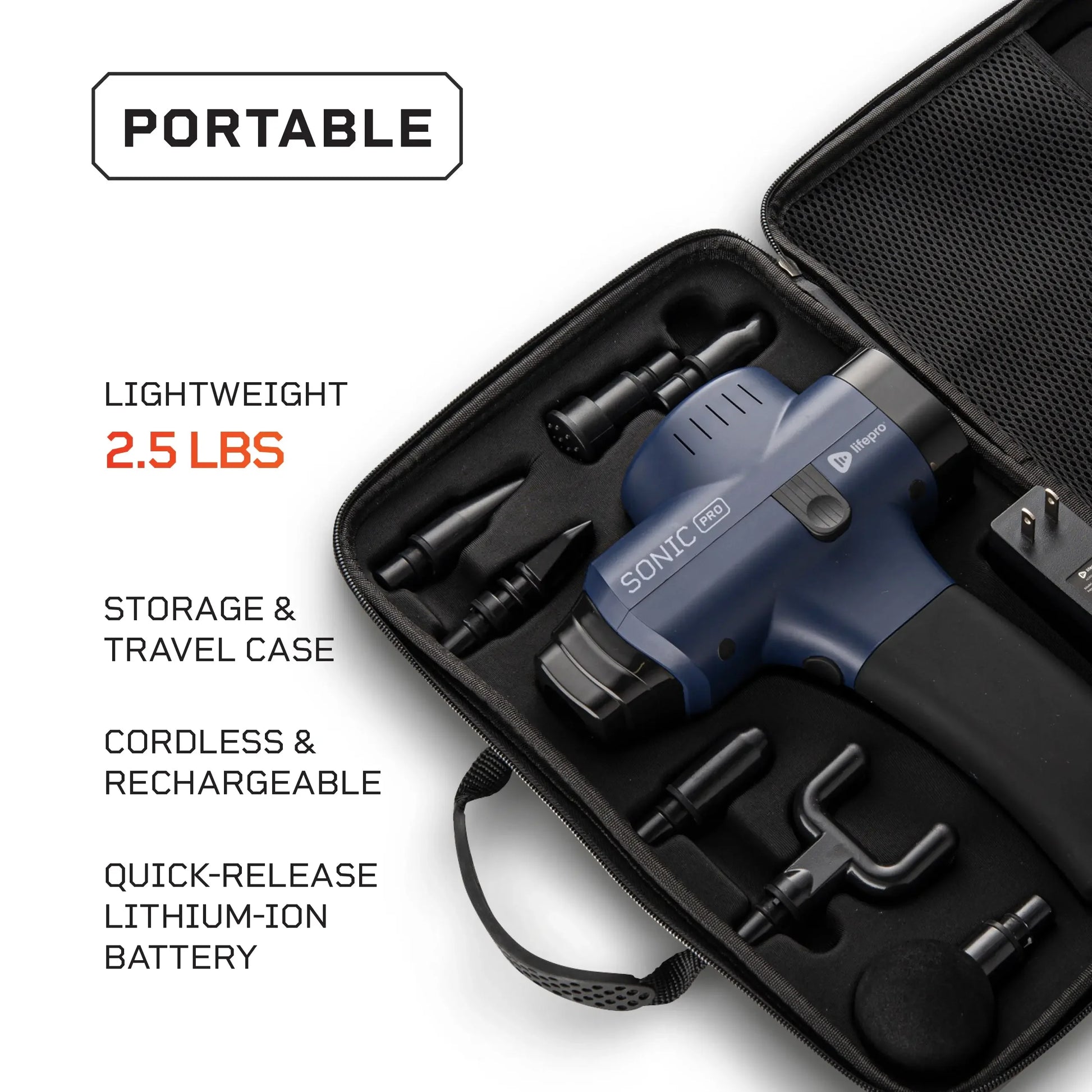 High-intensity deep massage gun for athletes enhancing pre-workout warmup and post-workout recovery and athletic performance.